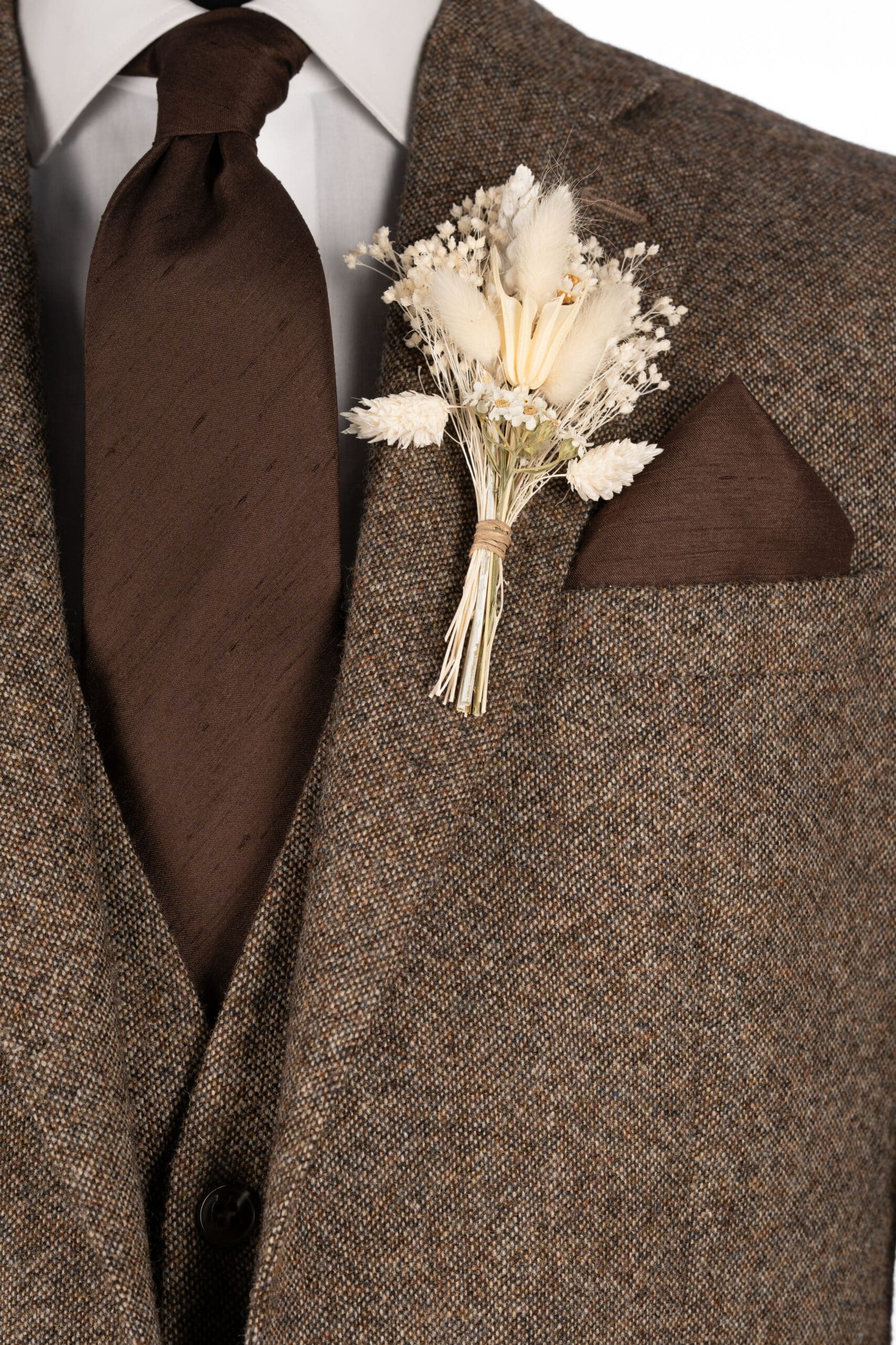 With the recent rise in the popularity of classic tweed attire, we are proud to present our beautifully crafted pure wool brown tweed suit. Designed with timeless elegance and contemporary style in mind, this suit combines traditional British tailoring with modern sophistication. The rich brown tone adds warmth and depth, making it a versatile choice for any occasion — from rustic weddings to formal gatherings. Perfect for the modern groom who values both heritage and refinement, this brown tweed suit is a true statement of style and craftsmanship.