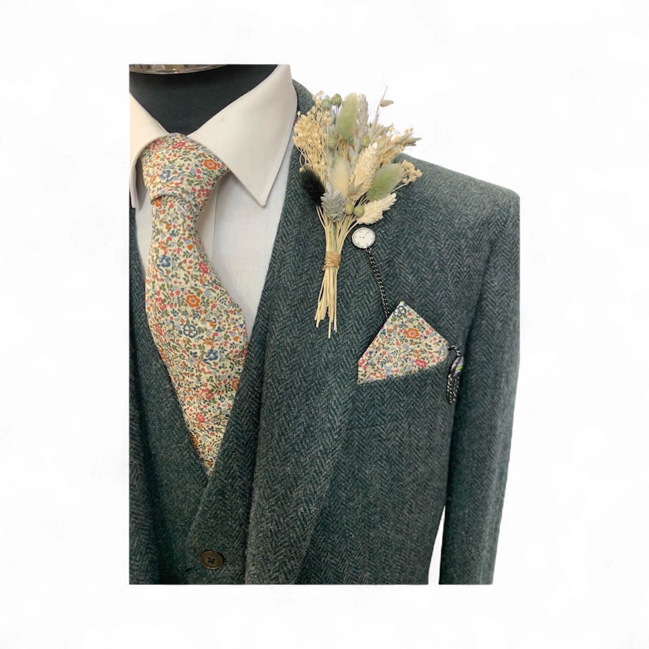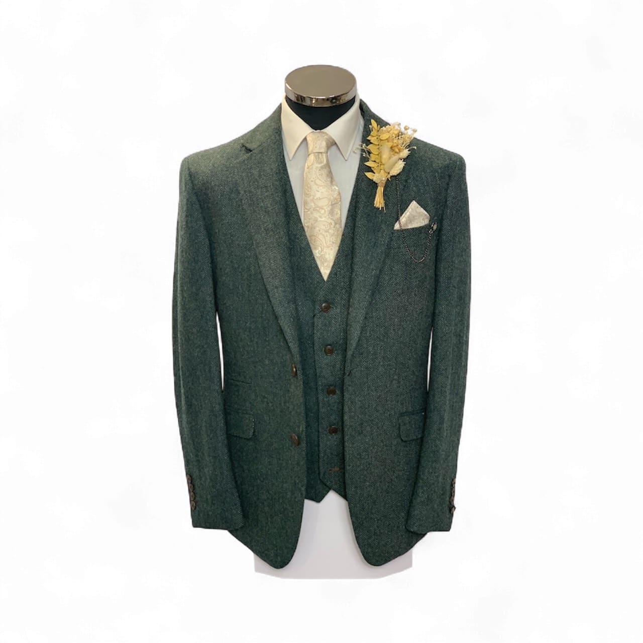 We’re excited to welcome this refined Olive Herringbone Tweed to our collection — a true embodiment of timeless sophistication. Crafted with exceptional quality and attention to detail, this suit delivers effortless style and versatility. The rich dark olive tone complements a wide variety of tie, cravat, and bow tie colours, making it an ideal choice for weddings and formal occasions alike.