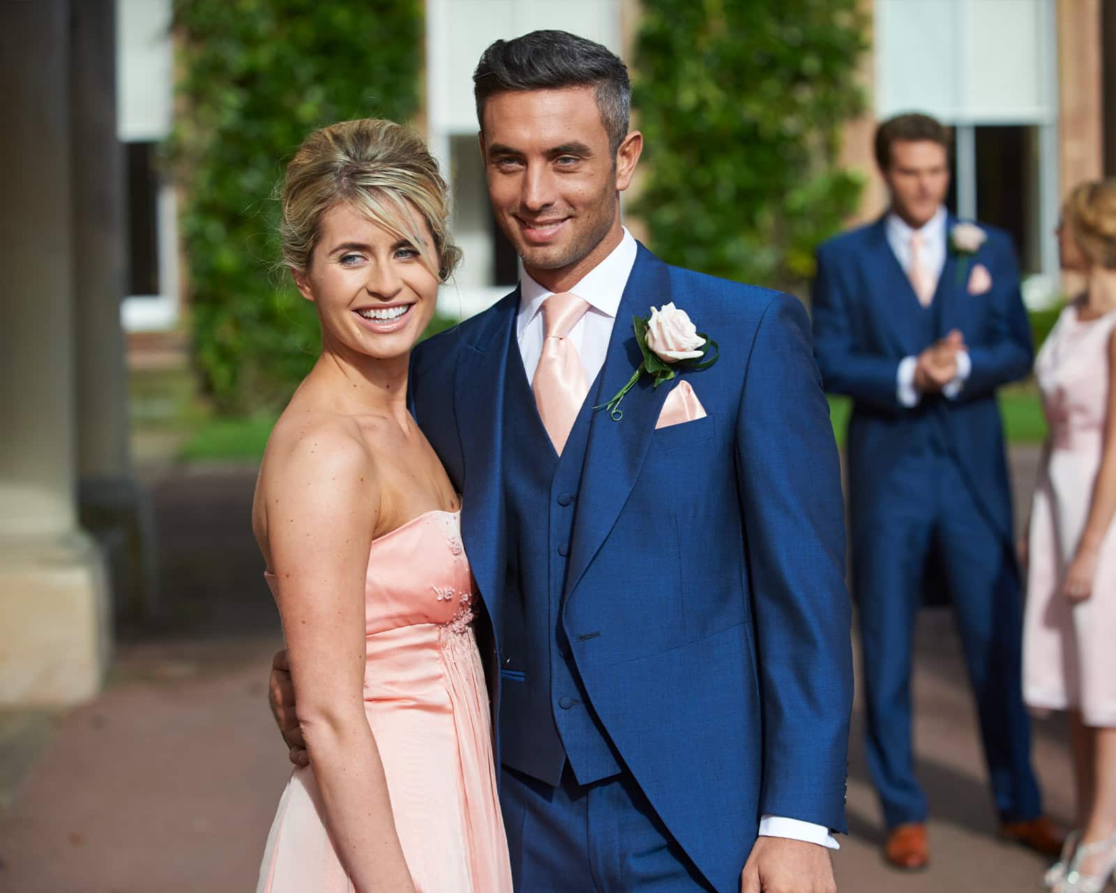 The striking royal blue hue pairs beautifully with a contrasting waistcoat and tie, bringing a contemporary twist to a traditional look. With its elegant cutaway tails, sharp peak lapels, and meticulous tailoring, this ensemble ensures you’ll look every bit the leading man on your big day.