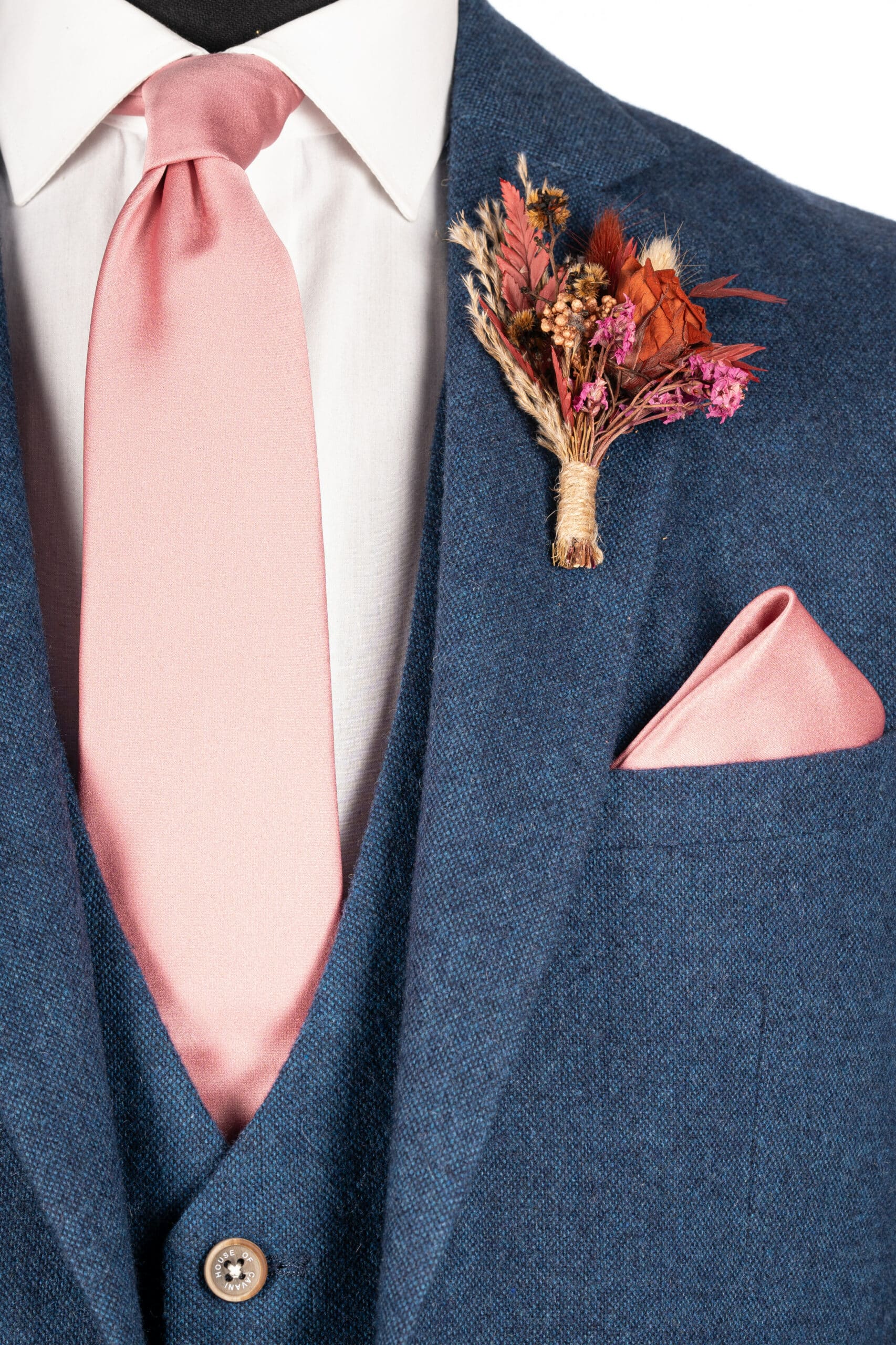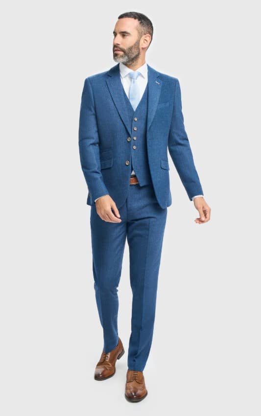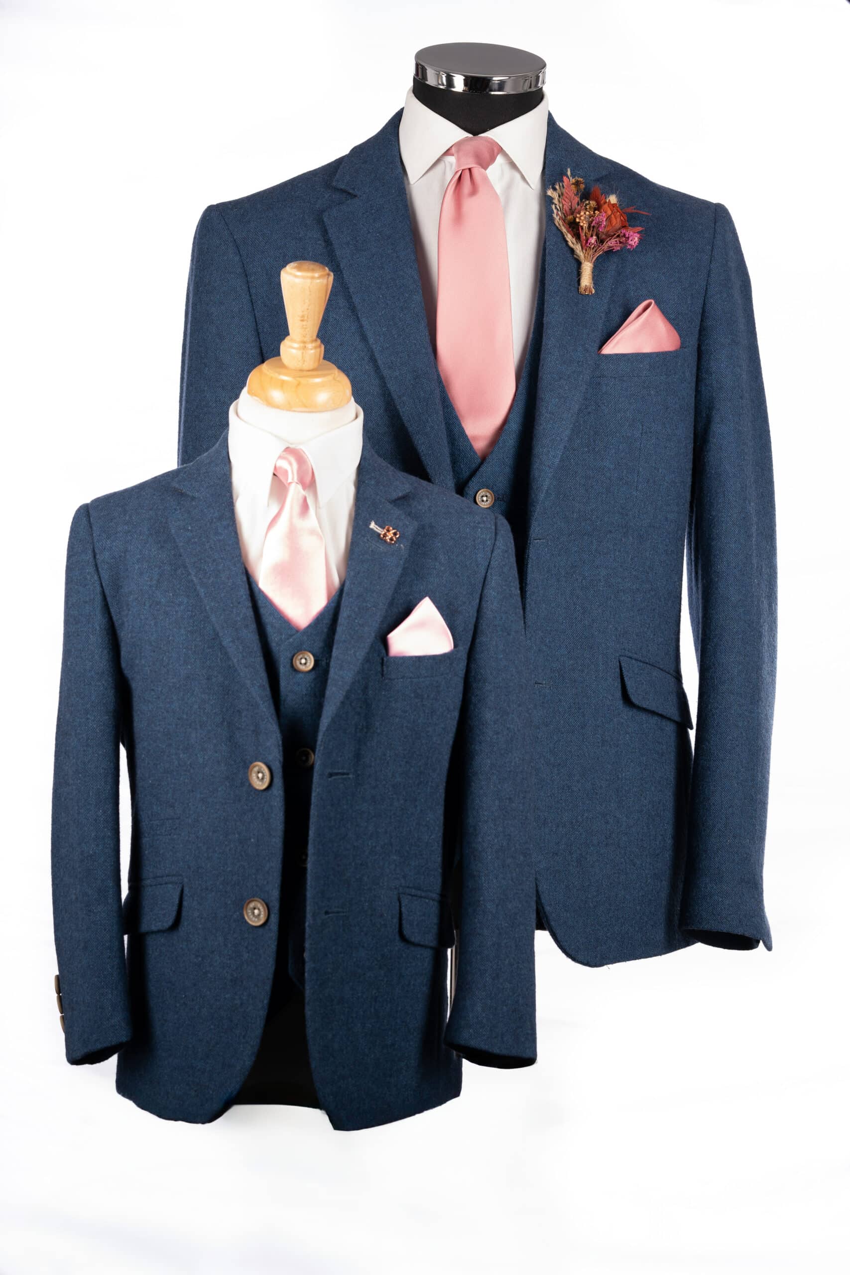 Following a surge in the popularity of tweed suits, we are pleased to offer this stunning Royal blue tweed suit. The soft textured fabric oozes class and style whilst maintaining comfort. A definite winner!